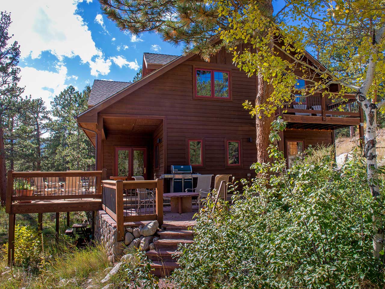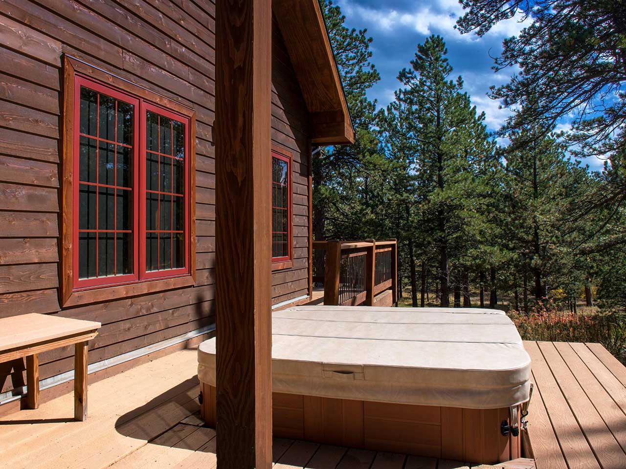 Littleton, CO: We enjoyed this beautiful cabin the beginning of June. Our daughter's wedding was at Wild Basin Lodge so it was also very convenient. The hot tub was used every day! Almost every morning and evening we sat out on the deck. One morning a moose came very close to the cabin and just hung out a while eating aspen leaves! I am glad we put the hummingbird feeder out because it was fun to watch those amazing little birds. We also saw a moose and some deer while hiking in close by RMNP. We ate almost every meal at the cabin. It was nice to have a grill and plenty of seating inside and out. Sandy at Pinebrook Vacation Rentals was very nice and helpful when we had any questions. (Thanks Sandy!) I would love to stay at River Run again!